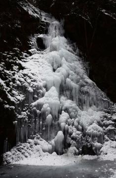 厳冬期でなければご覧になれない村内の観光スポットをいくつか、ご紹介いたします。多摩川の支流の中でも最大といわれている秋川は、檜原村に入ると間もなく本流と北秋川に分かれます。どちらの川も、四季折々に表情を変える景色は見応えがあります。