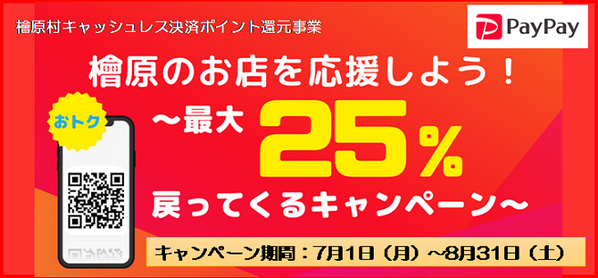 PayPayを活用したキャッシュレス決済ポイント還元事業を村内で実施するにあたり、新規取扱店の募集と事業者説明会を実施します。